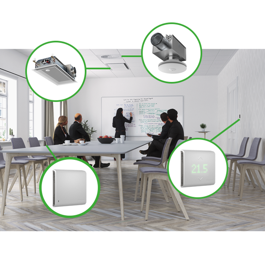 Le thème de la durabilité ne cesse de gagner en importance, tout comme l'importance des bâtiments certifiés en matière d'environnement. C'est pourquoi notre produit WISE est un excellent système pour les bâtiments qui doivent être certifiés conformément aux programmes de certification en matière d'environnement ou de santé et de bien-être, tels que BREEAM, LEED et WELL. Grâce à la technologie sans fil flexible qui sert de plateforme de communication au système WISE, il est également facile d'effectuer des modifications après la construction, ce qui est une priorité dans plusieurs programmes de certification. Autre caractéristique marquante : la possibilité pour chaque occupant d'adapter son climat intérieur pièce par pièce, un principe parfaitement pris en compte par les options du système WISE.
