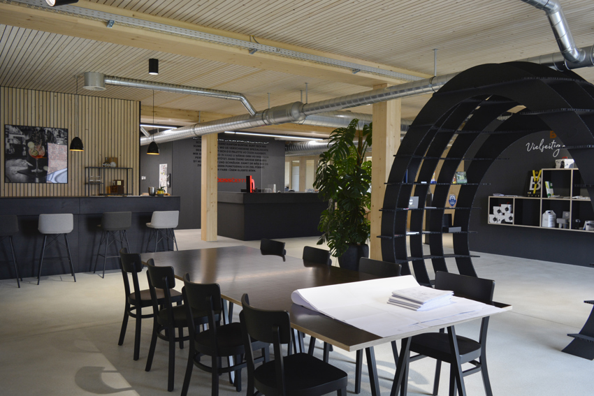 Der Neubau der Digital Druckerei Boss ist aus einer massiven Holzkonstruktion
