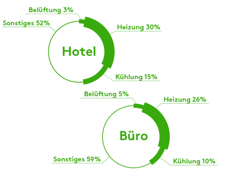 Lüftungs- und Klimasysteme sind große Energieverbraucher - bezogen auf 50 % des Gesamtenergieverbrauchs für Bürogebäude und 70 % für Hotels.