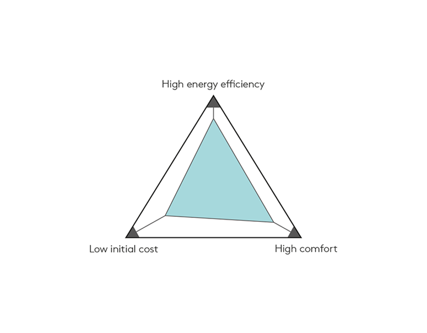 A semi-centralised solution eliminates the need for extensive ducting, the advantage of which is relatively low system pressure falls, which in turn results in an energy-efficient and quiet system. Semi-centralised units can be served by a counterflow heat exchanger or a rotary heat exchanger.