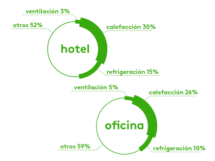 Los sistemas de ventilación y climatización son grandes consumidores de energía: suponen el 50% del consumo total de los edificios de oficinas y el 70% de los hoteles.