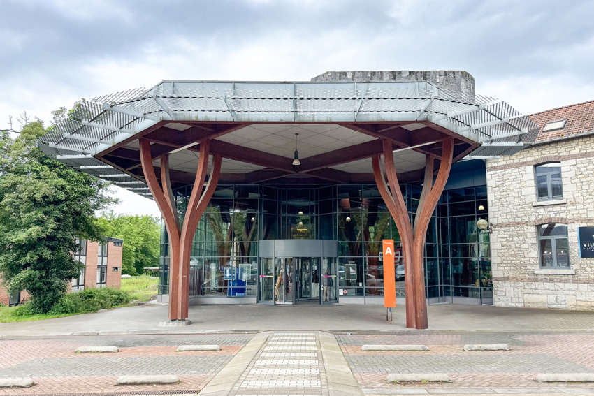 CHU UCL Namur site van Godinne: een moderne en duurzame ontvangstruimte om de ervaring van patiënten en bezoekers te verbeteren.