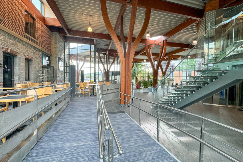 De renovatie van de onthaalzone van ziekenhuis CHU Mont Godinne was vooral bedoeld om de ervaring van patiënten en bezoekers die het gebouw binnenstappen, te verbeteren.