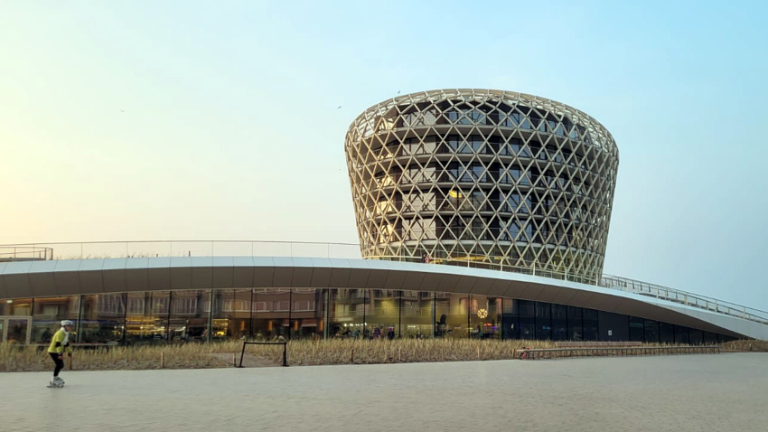 La mission n’était certes pas évidente pour le bureau d’architecture : concevoir un bâtiment évènementiel hors du commun tout en renforçant la digue existante et en améliorant l’espace public. L’ensemble devant également répondre à des critères de durabilité et de circularité très stricts.