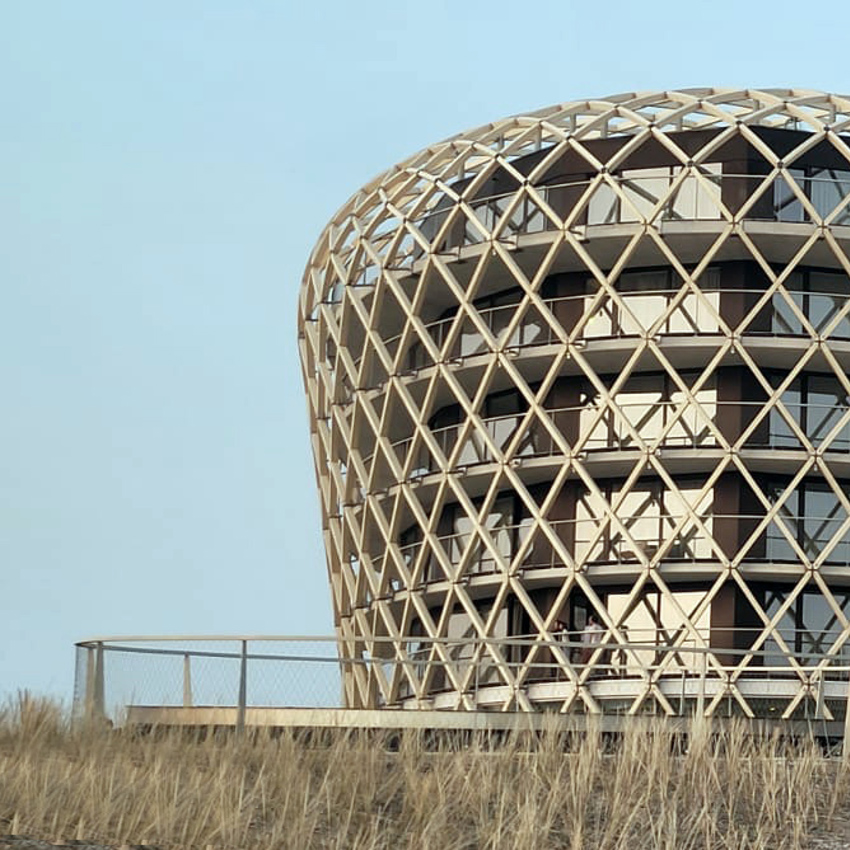 Le résultat époustouflant de ce cahier des charges offre désormais des vues splendides sur la mer aux occupants des espaces intérieurs et de l’hôtel, avec un impact extrêmement limité sur l’environnement extérieur. Les dunes, en porte-à-faux par rapport à la menuiserie extérieure, fournissant de l'ombre pendant les mois chauds de l'été et une isolation naturelle contre le froid en hiver.